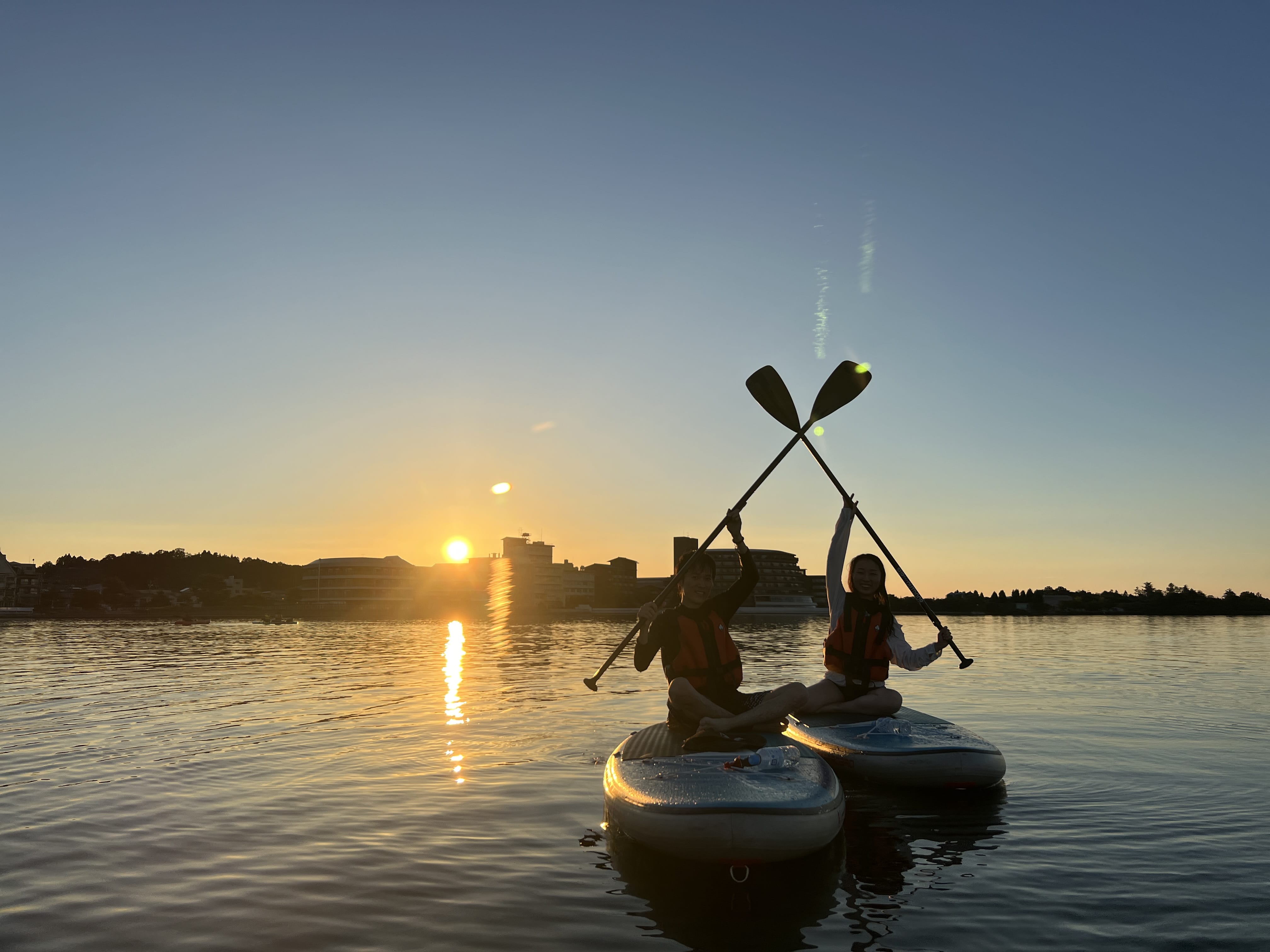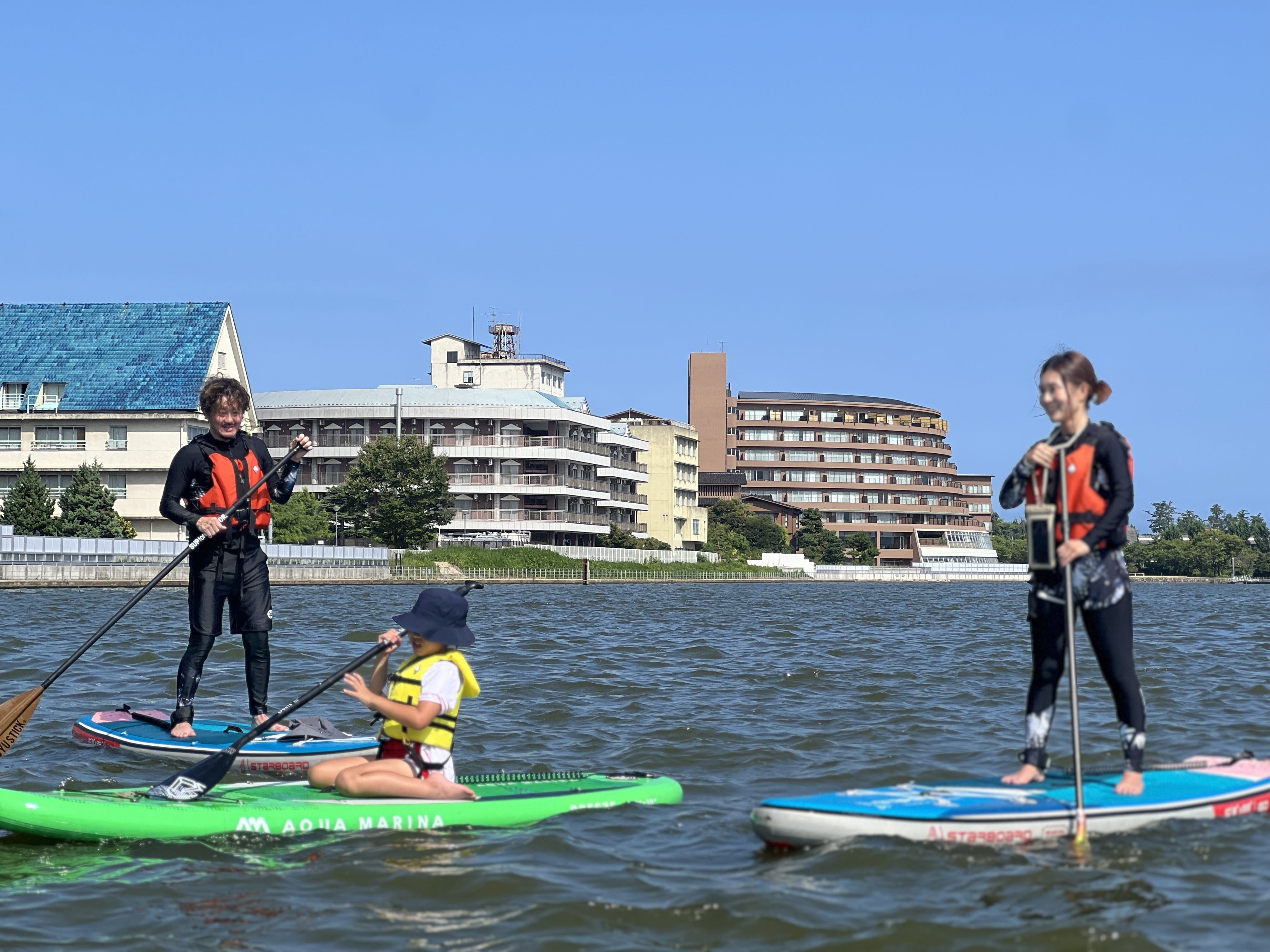Enjoy a SUP (SUP) experience at Shibayama Lagoon in Katayamazu Onsen, Ishikawa Prefecture.